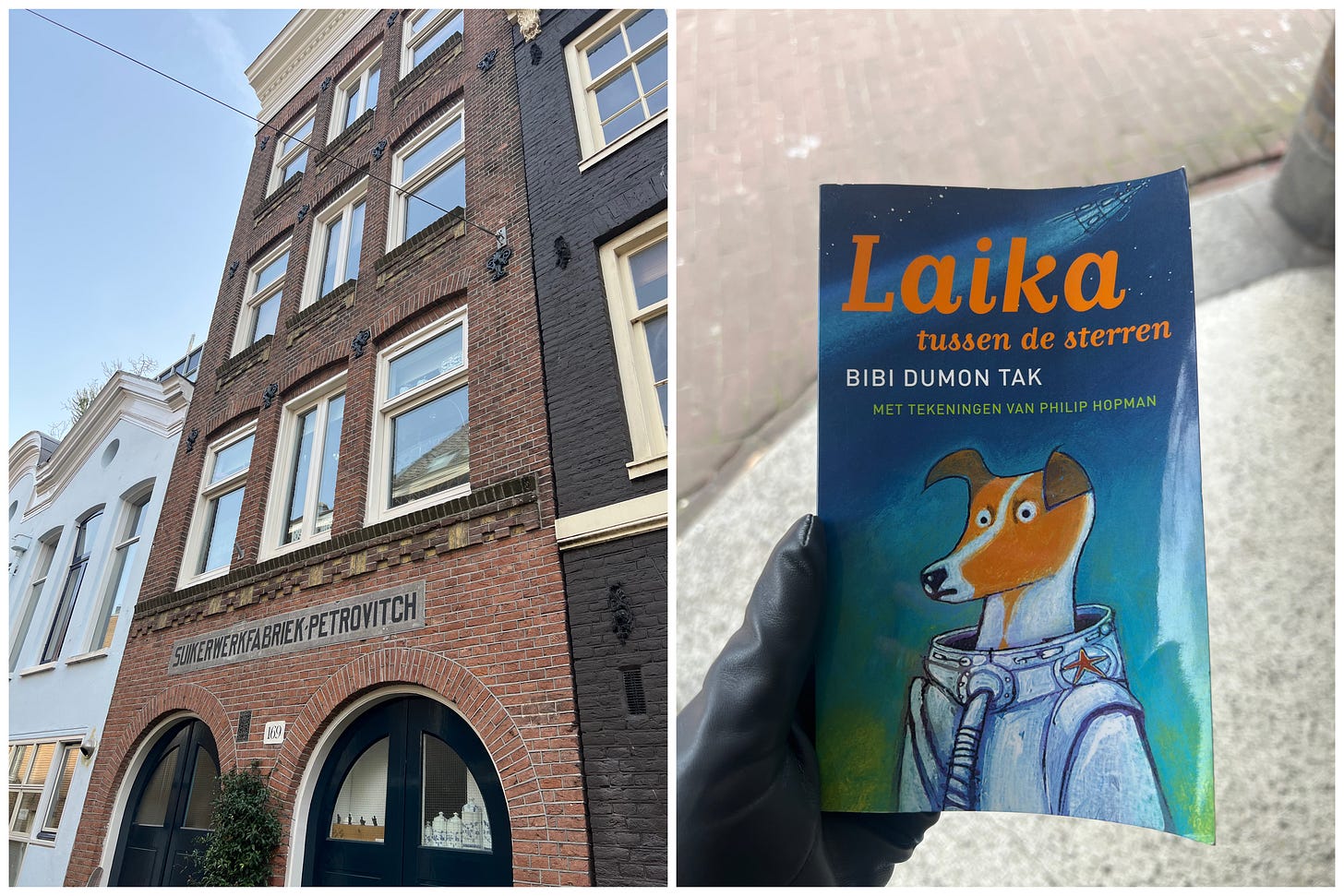 #2. В Амстердаме много книжных полок на улицах, куда можно принести ненужные книги и/или забрать что-то с собой. В марте забрала первую книгу сама – про животных, которые помогают человечеству. Название переводится как «Лайка среди звезд». Это, конечно, та самая известная вам Лайка – ей, а еще Белке и Стрелке посвящена первая глава. Не смогла без них уйти! Ну и попробую почитать, зря что ли сдала экзамен по чтению.